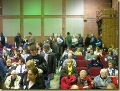 In a completely unscientific photographic essay, let's examine the difference between Democratic and Republican groups at one caucus site.